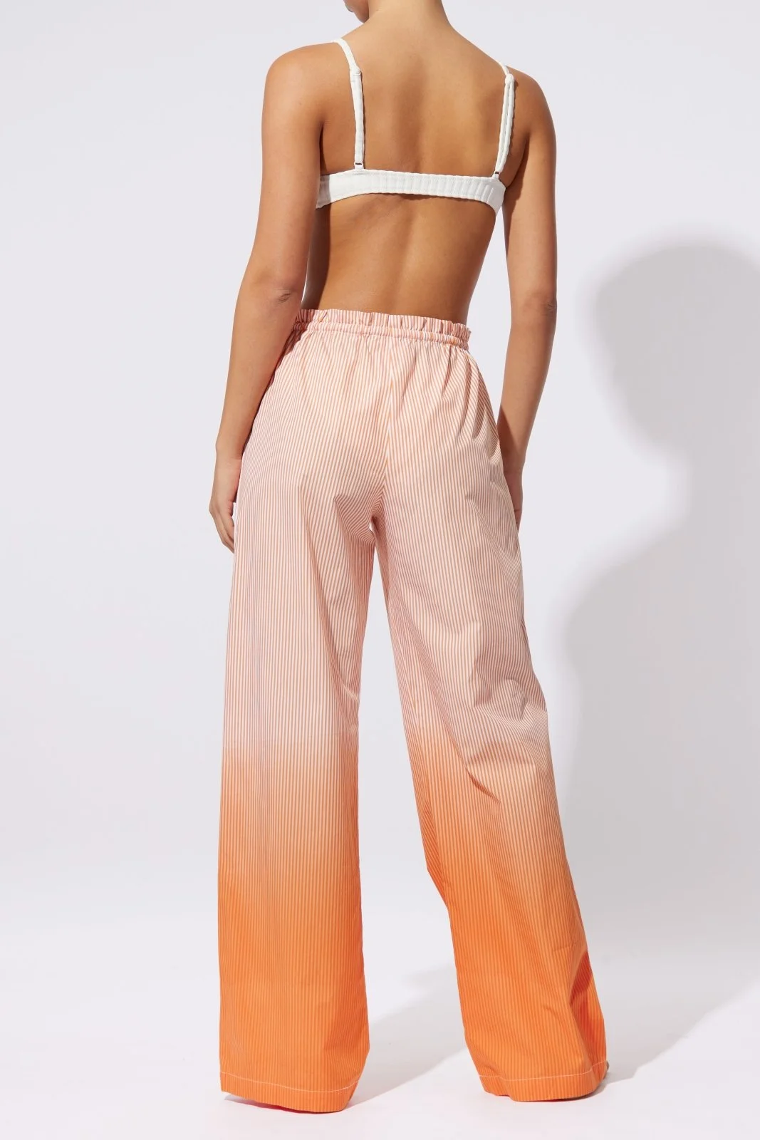 Standout in the Allegra Pant. Featured in aย soft cotton Shirting with contrasting dip dye; this pant is a Spring staple. Functional pockets and and adjustable waistline, pair with the coordinating Oxford Tunic for a chic coverup or everyday set.ย