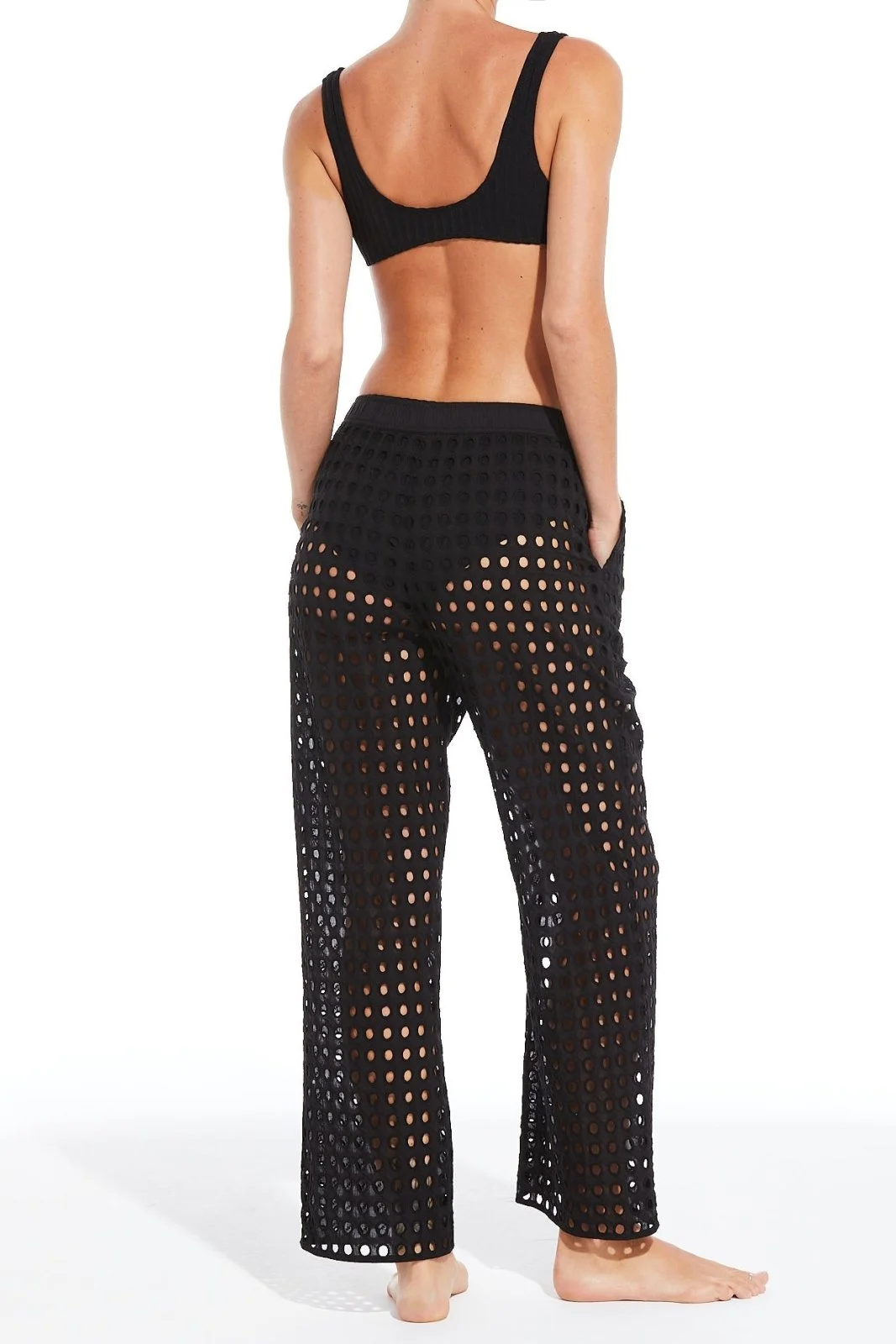 A timeless silhouette, the eyelet Avril black Pant can be worn season to season. Featured in a soft cotton; this comfortable straight leg pant is a staple. Functional pockets and and elastic waistline, pair with the coordinating Arlette top a for a chic coverup or everyday set.