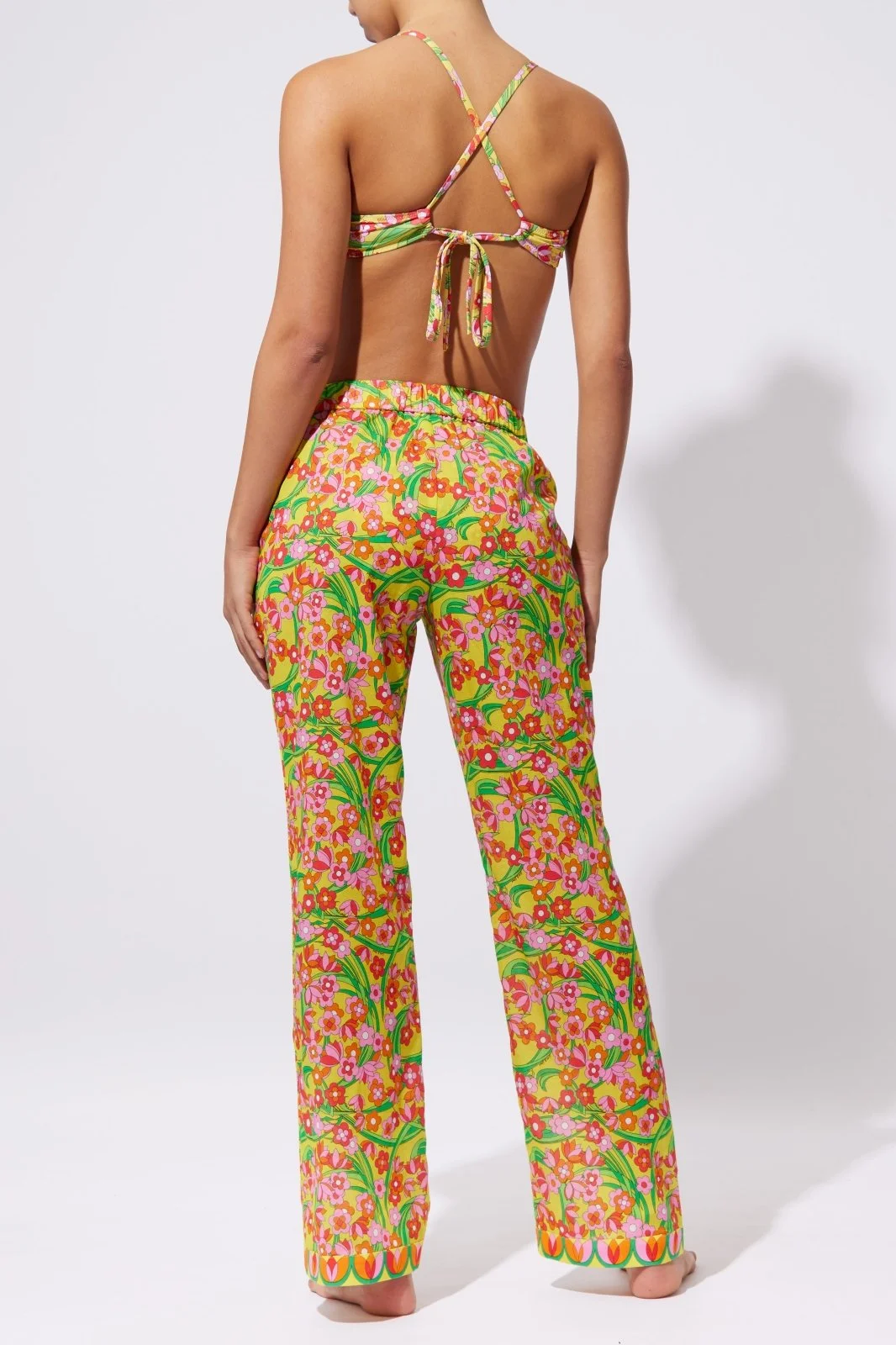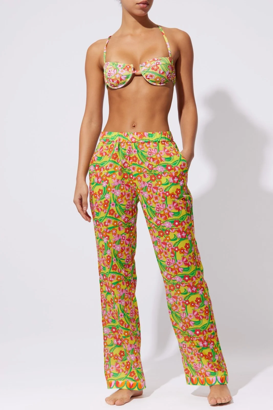 Standout in the floral Avril Pant. Featured in a soft cotton; this comfortable straight leg pant is a Spring staple. Functional pockets and and elastic waistline, pair with the coordinating Cabana for a chic coverup or everyday set.