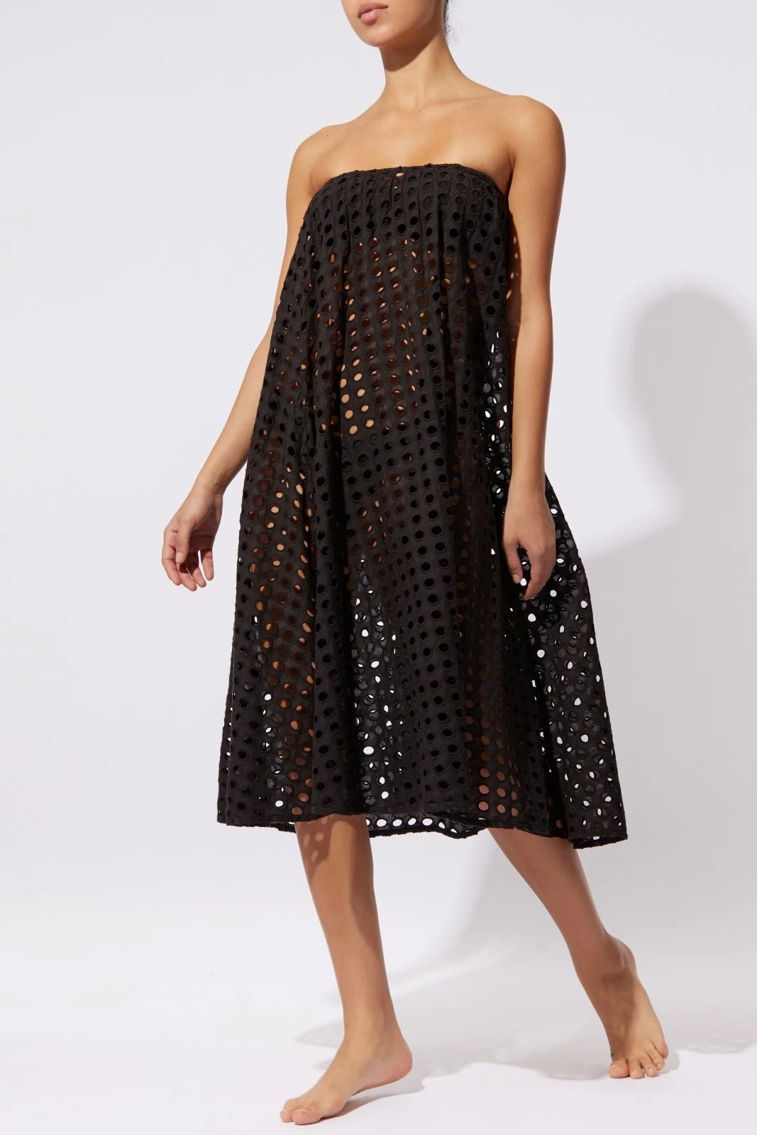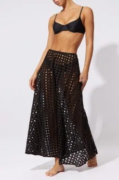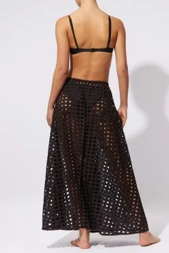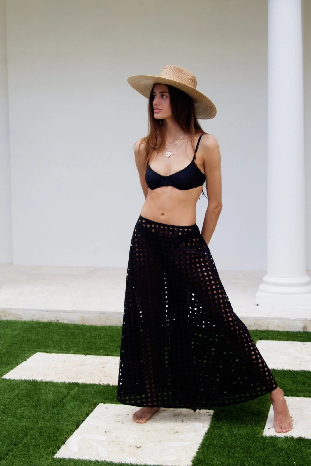 Pull-on style, this new Brie Maxi Skirt, is a timeless silhouette in classic black eyelet. Wear over your favorite suit and pair with the Arlette Shirt. Due to the nature of the elastic waist, double this maxi as a strapless midi dress. Lightweight in feel, this piece falls beautifully and is the perfect 2-in-1 outfit your Spring wardrobe needs.