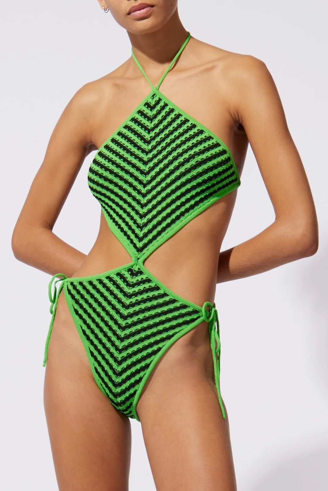 The Cheyenne one piece is guaranteed to make you stand out on the beach this Spring. Adjust as you wish with hip, back and neck tie details. Style with the Oxford Tunic in Marshmallow.