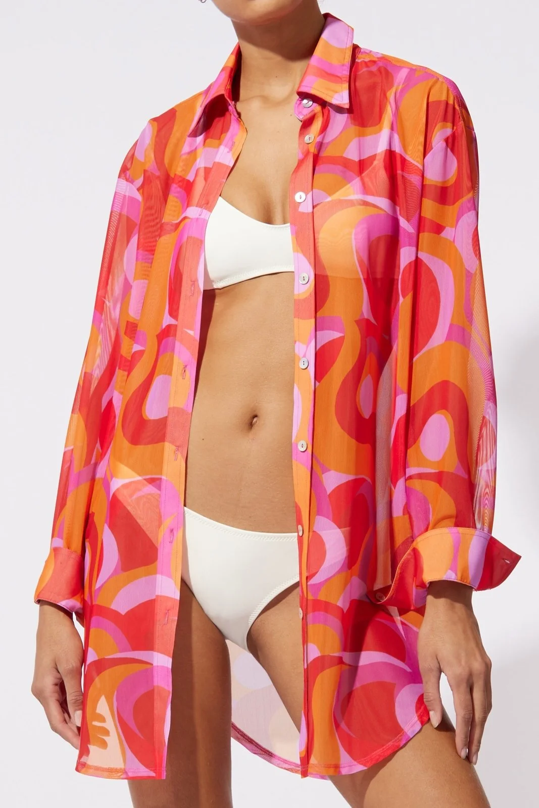 Retro feel to a timeless silhouette. Featured in a soft mesh fabrication the Dallas Tunic offers the relaxed yet chic fit your wardrobe needs. Pair with the Odette Pant for a beach to night co-ord.