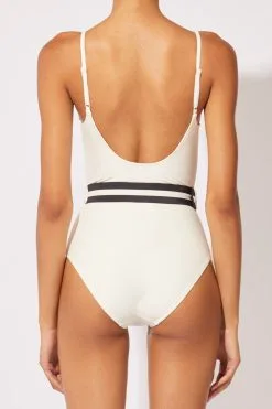 The Nina Belt One Piece is your new retro go-to. This classic one-piece has adjustable straps, a scoop neck and back, and offers moderate coverage. Wear it with the contrast belt to highlight your waist, or remove it to wear the one-piece as a bodysuit.