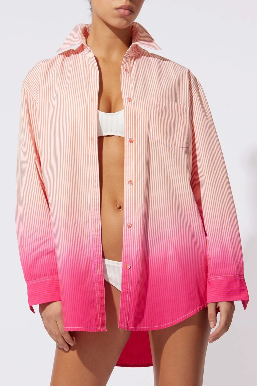 Our bestselling Oxford Tunic is back and is the perfect update to a classic button-down. With a center front button closure, a functioning patch pocket, button closure on the cuff, and a hanger loop on the back, this cotton, striped top offers all the versatility you need. Wear it unbuttoned as a cover-up, or pair it with your favorite jeans for a transitional look.