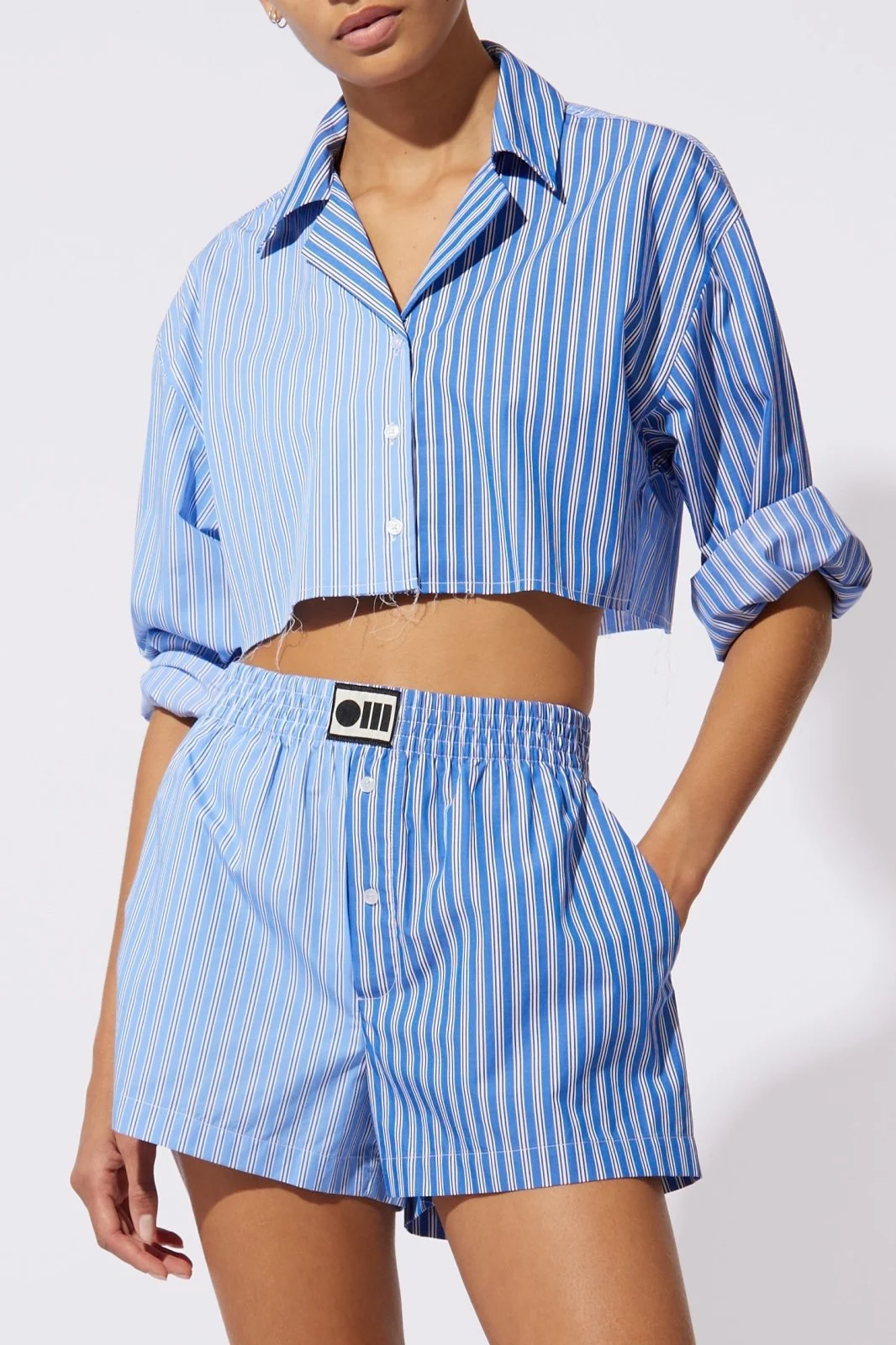 Distressed hemline and boxy in shape, this cropped Rosalie Button Down is the perfect piece to throw on everyday. Pair with the coordinating Lexy Boxer for a casual co-ord or wear with a favorite pair of denim for a trendy look.